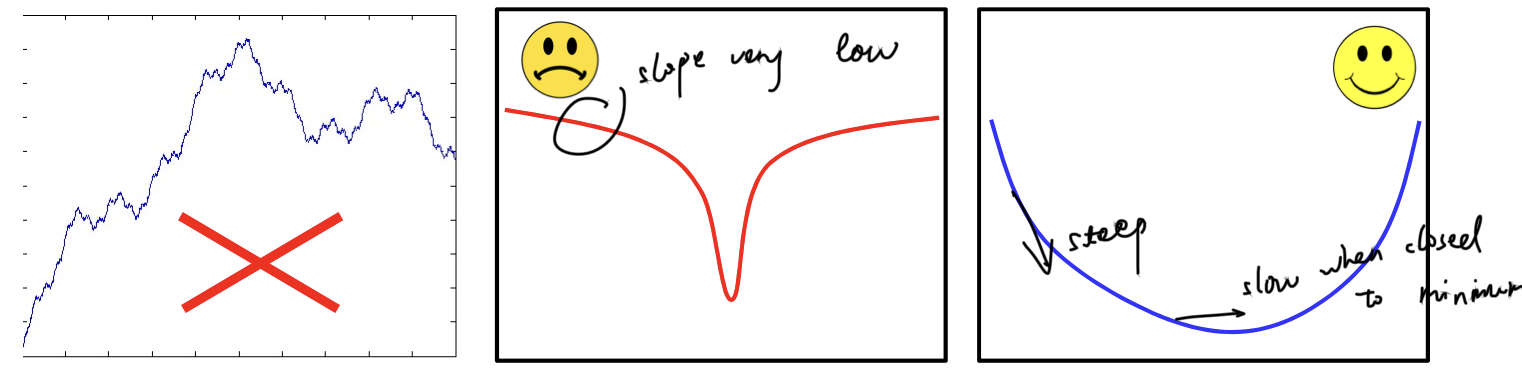 • The best type of divergence is steep far from the optimum, but shallow at the optimum