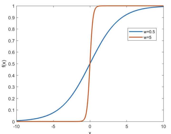 • Using a sigmoid activation, as w|w| increases, the response becomes steeper