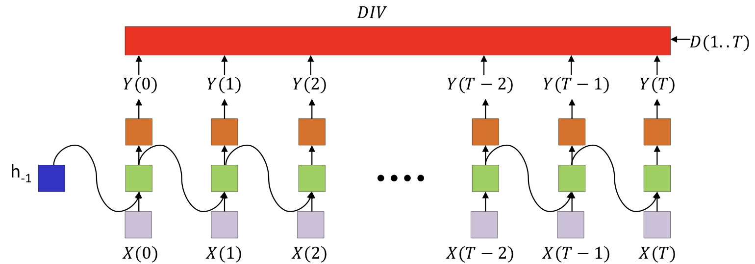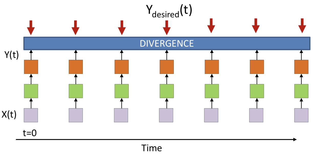 • The divergence computed is between the sequence of outputs by the network and the desired sequence of outputs