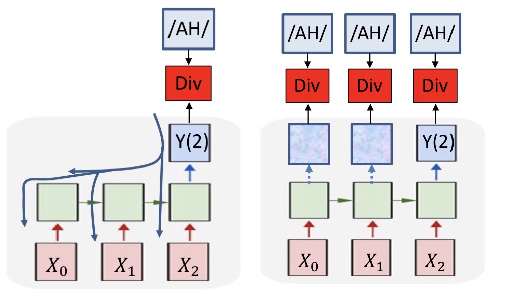 • DIV(Ytarget,Y)=twtXent(Y(t), Phoneme)D I V\left(Y_{\text {target}}, Y\right)=\sum_{t} w_{t} \operatorname{Xent}(Y(t), \text { Phoneme})