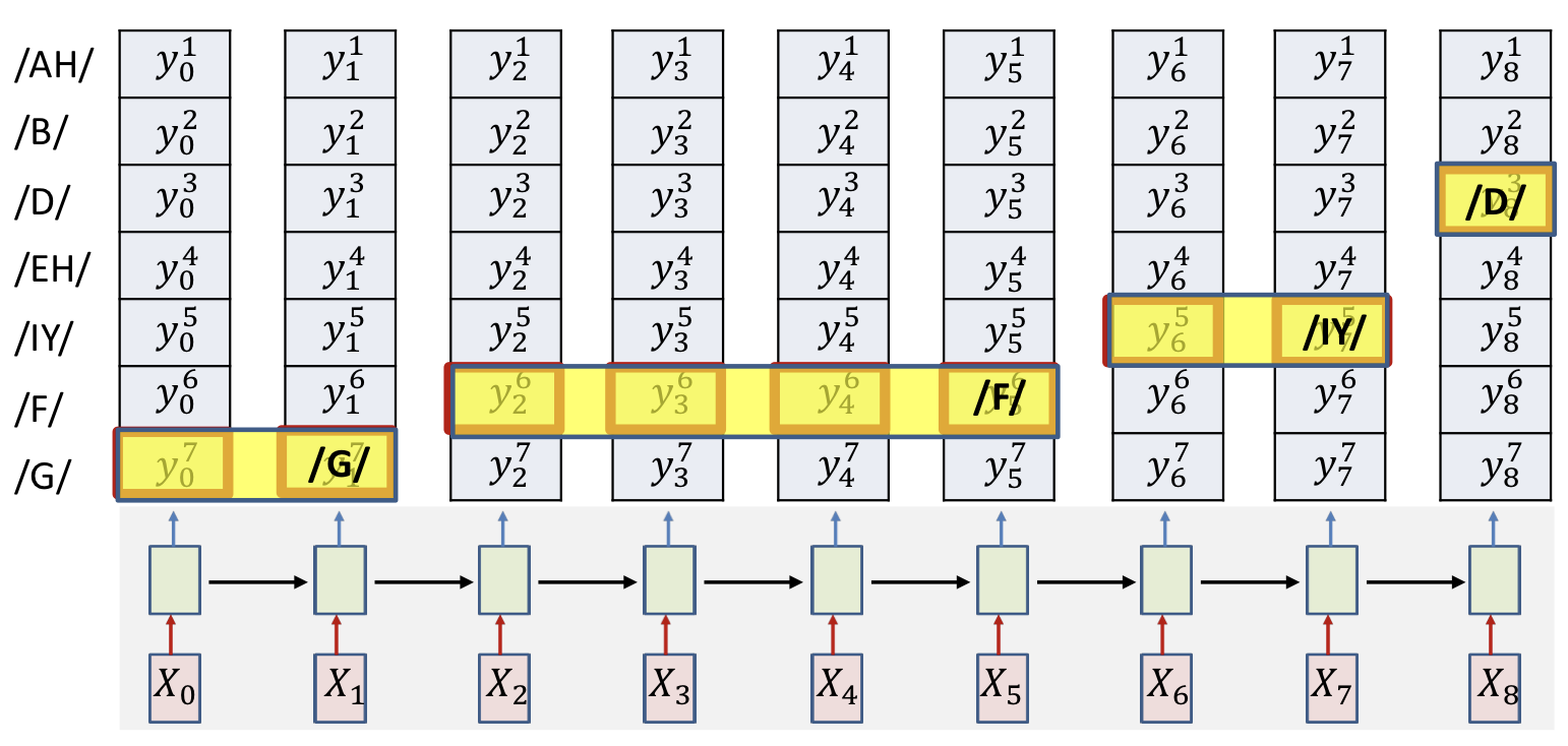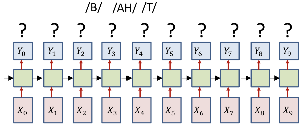 • Input : Sequence of feature vectors (e.g. Mel spectra)