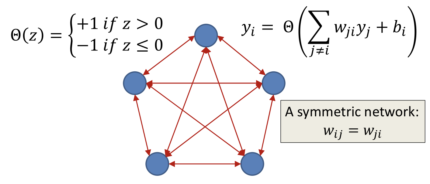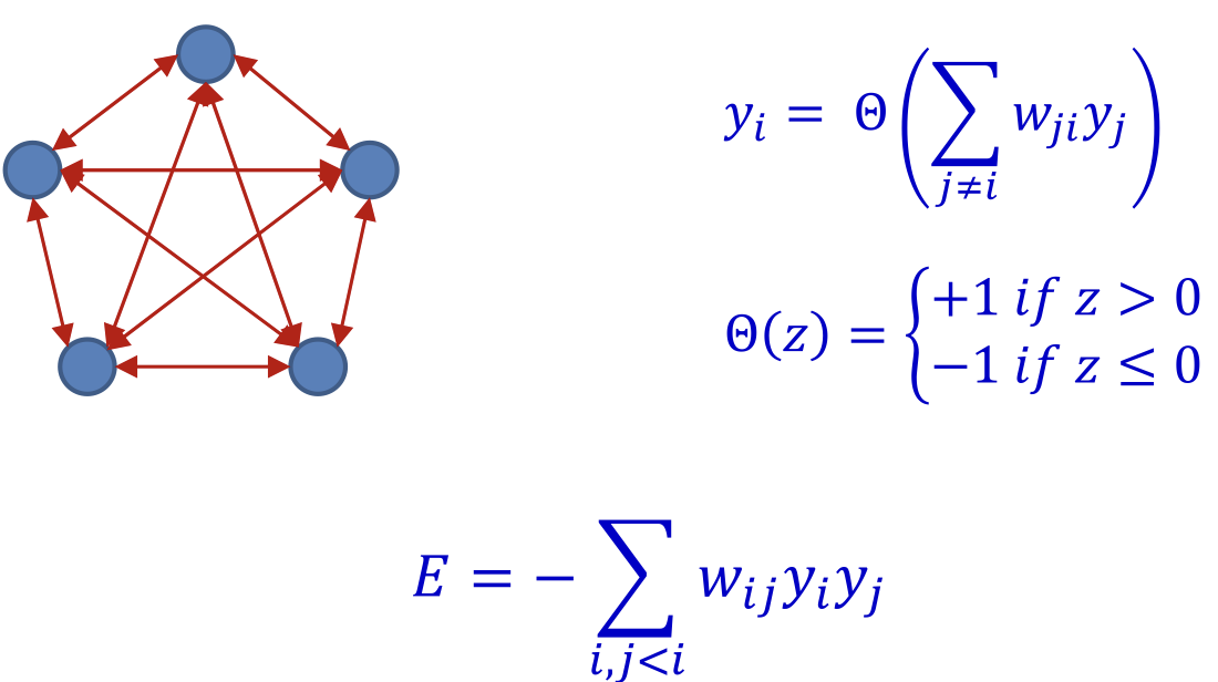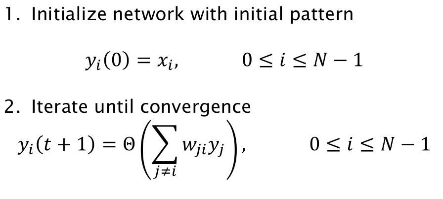 - Hopfield: For a network of neurons can store up to ~ patterns through Hebbian learning(Provided in PPT)