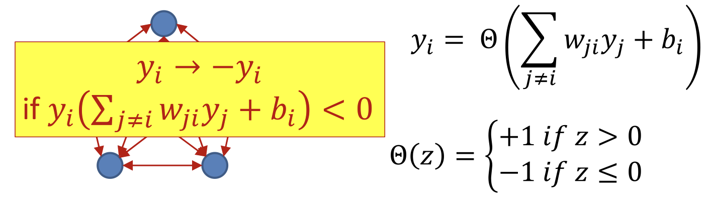 - If the sign of the field at any neuron opposes its own sign, it “flips” to match the field