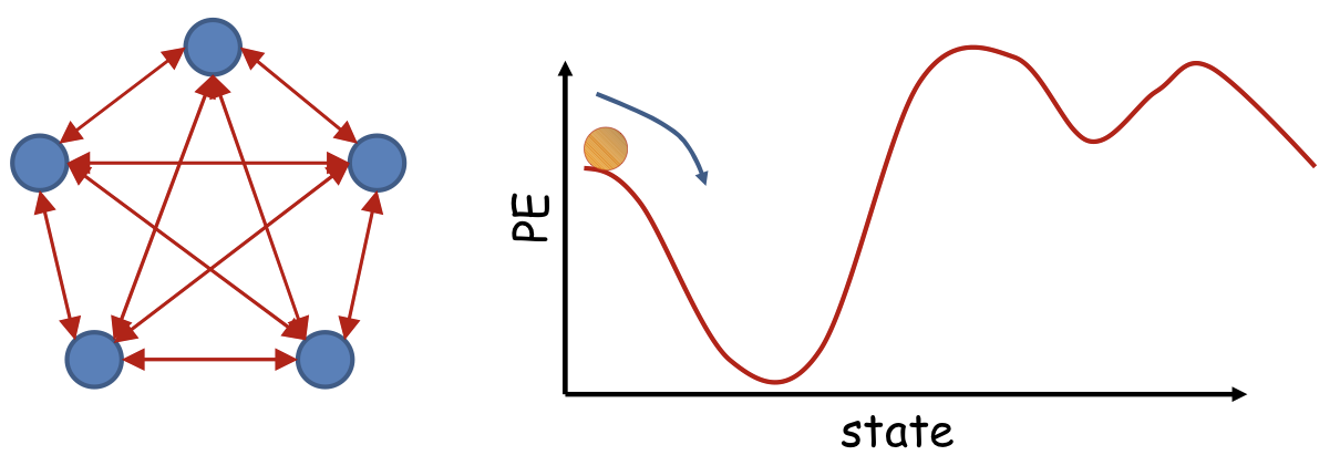 - The system will evolve until the energy hits a local minimum