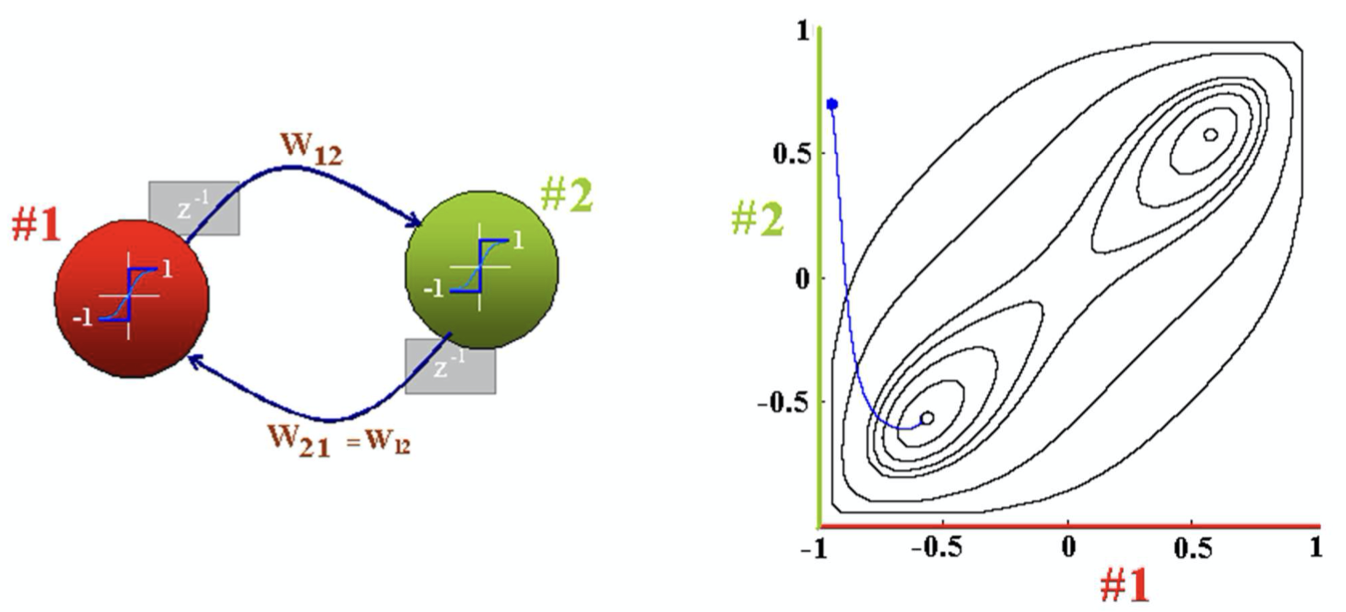 - If the network is initialized close to a stored pattern, it will inevitably evolve to the pattern