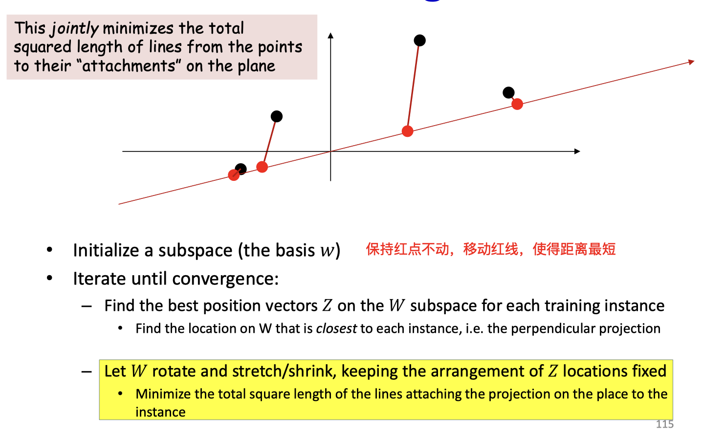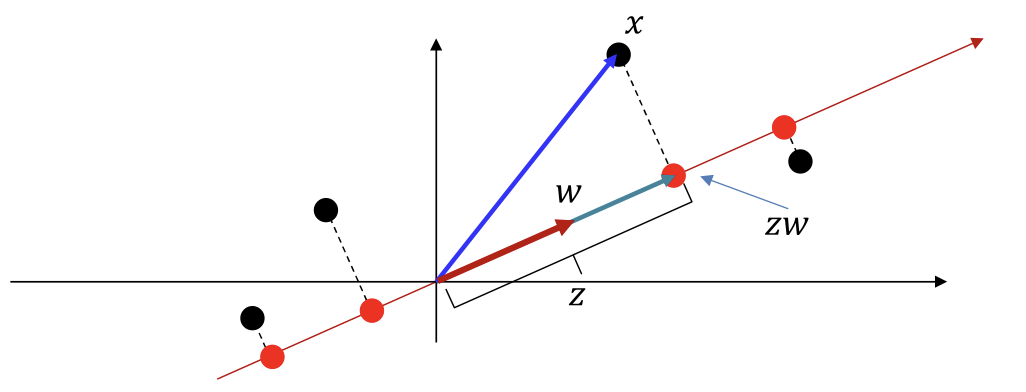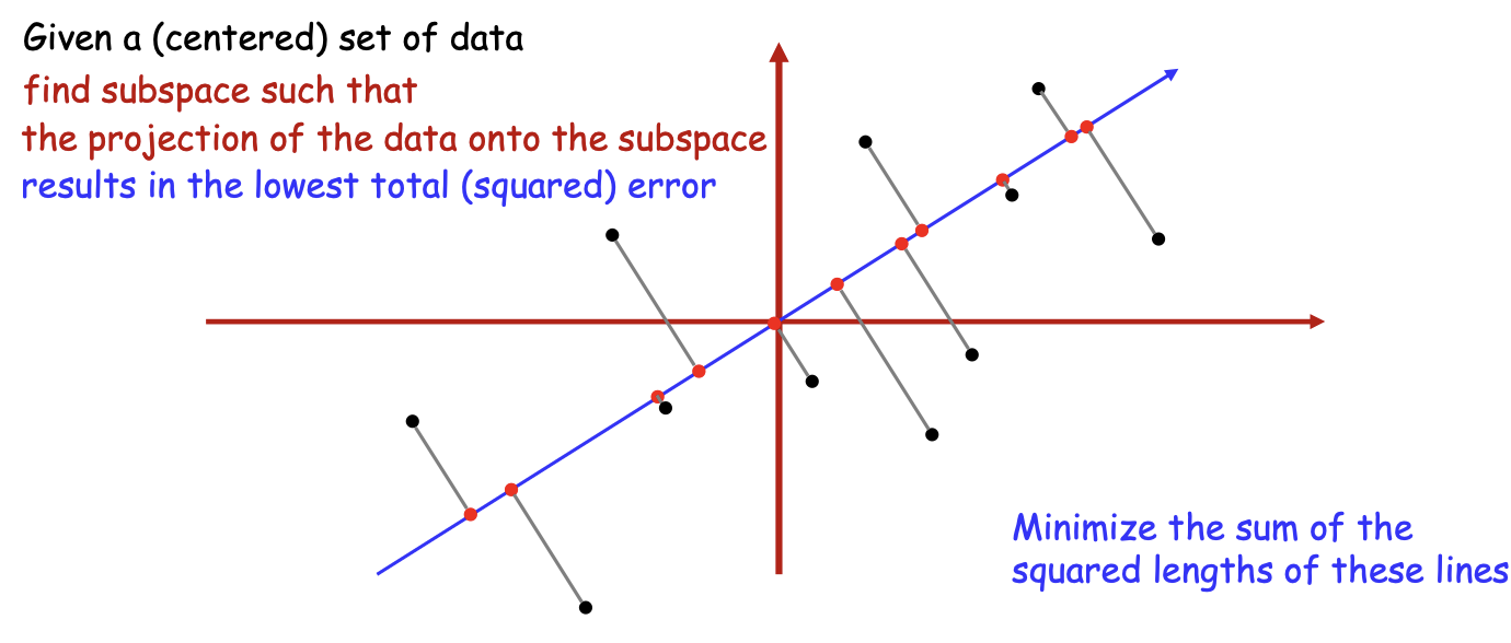 - Find the principal subspace such that when all vectors are approximated as lying on that subspace, the approximation error is minimal