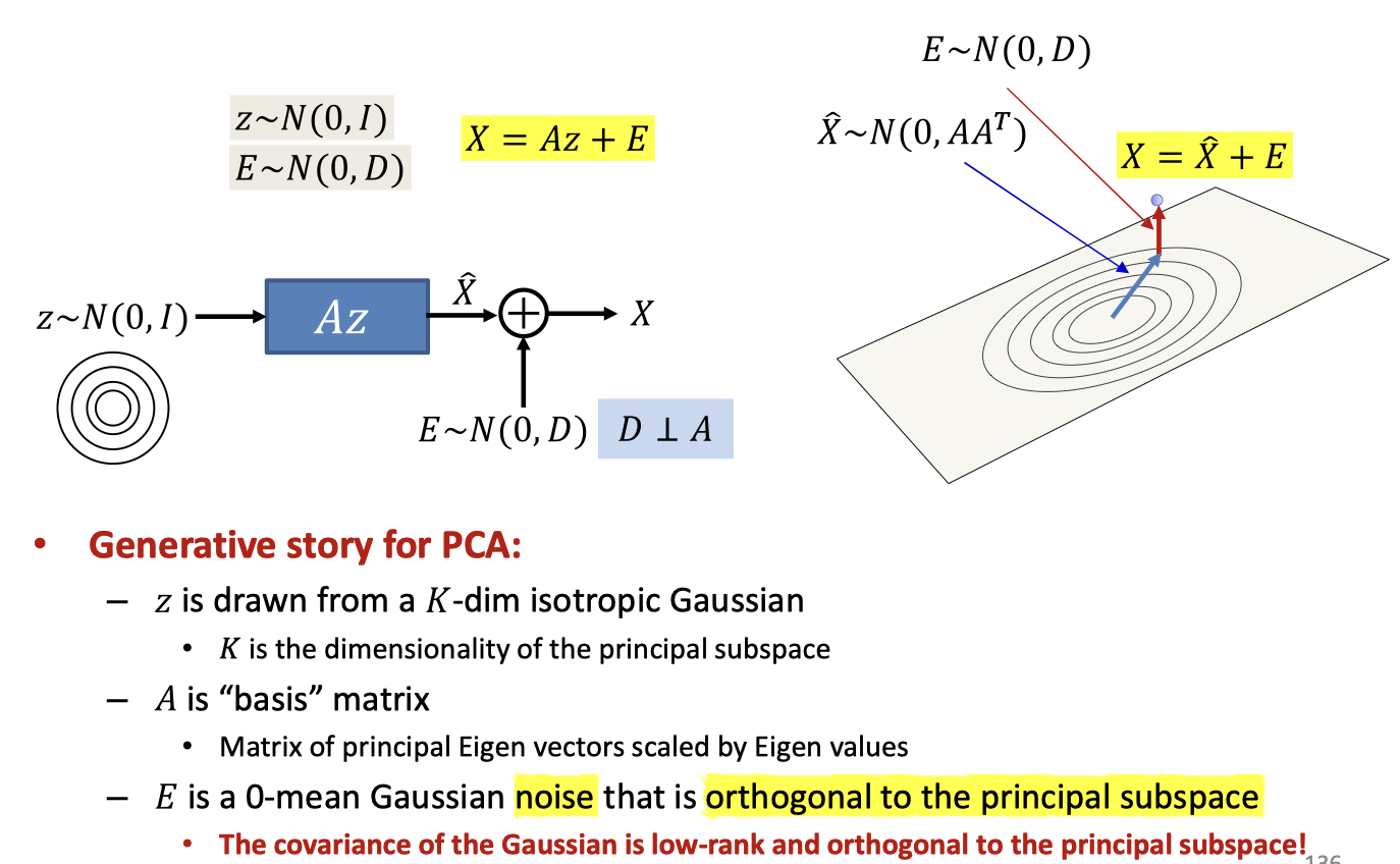- Like PCA, but without directional constraints on the noise (not necessarily orthogonal)